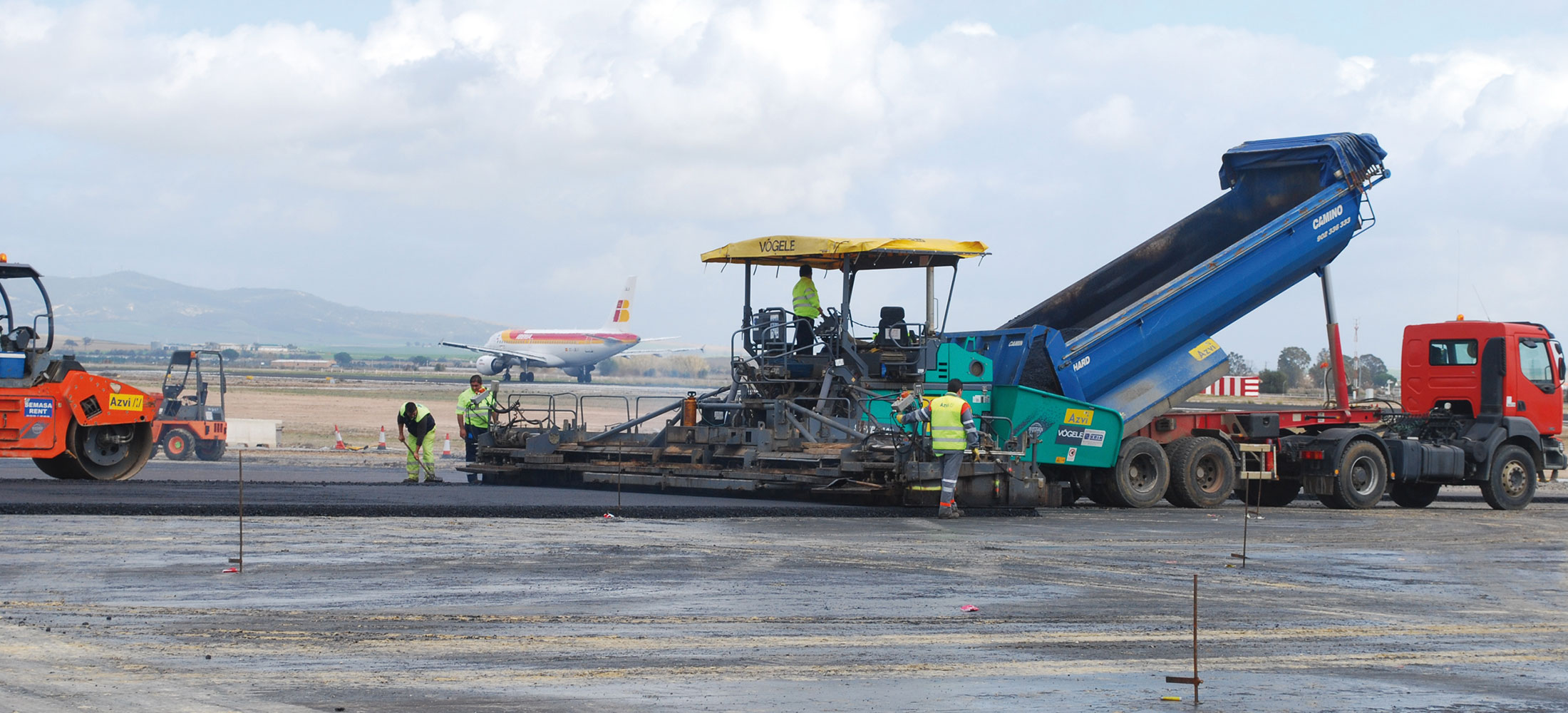 El importante aumento del tráfico comercial y privado en los años anteriores así como la necesidad de un área de maniobras de mayor capacidad llevaron al Aeropuerto de Jerez a acometer esta ampliación que permitió aumentar la capacidad operacional del mismo. El proyecto, con un presupuesto de 11,4 M€, consistió en la prolongación de la calle de rodadura paralela a pista hasta la cabecera 02 y ejecución de una calle de salida rápida para abandono de pista en aterrizajes por la cabecera 20, la cual permite disminuir también el tiempo de ocupación de la pista y aumenta así la capacidad del aeropuerto. La explanada de las calles de rodadura está compuesta por un suelo estabilizado con cemento o cal que varía entre 30 y 60 cm según la zona, y un paquete de suelo seleccionado de 40 cm de espesor. Sobre el suelo seccionado, el paquete de firme se compone de 20 cm de zahorra artificial sobre la que se extienden 36 de mezcla bituminosa en caliente (MBC) en cuatro capas: dos capas de base tipo T1 de 11 cm cada una, una capa intermedia tipo T5 de 8 cm y una capa de rodadura con árido ofítico y betún modificado tipo T6, de 6 cm de espesor. La fabricación de la MBC se llevó a cabo en obra con una planta de aglomerado propiedad de Azvi, lo cual permitió obtener un aglomerado de excelentes calidades. Con el fin de reducir el impacto asociado a la demolición de parte del firme existente y para evitar el transporte a vertederos autorizados, se llevaron a cabo trabajos de fresado y reciclado de firmes. El material resultante se reutilizó como zahorra o como suelo seleccionado en diversos tajos de la obra. Con la configuración anterior del aeropuerto, los aviones, tras el aterrizaje, debían efectuar un giro de 180º en la cabecera, realizando posteriormente el rodaje por la pista de aterrizaje hacia la plataforma de estacionamiento. Este procedimiento dilata en exceso el tiempo de ocupación de pista con la consiguiente disminución de la capacidad del campo de vuelos. Con la nueva configuración, las aeronaves pudieron utilizar la nueva calle de rodadura para hacer el recorrido hasta la plataforma de estacionamiento y, de esta manera, la pista sería ocupada menos tiempo, ocurriendo lo mismo en las operaciones de despegue ya que, con la nueva calle, las aeronaves no necesitarían utilizar la pista para aproximarse a la cabecera y poder iniciar el despegue. El tramo Torrejón de Velasco. Ramales de Conexión LAV Madrid-Levante con LAV Madrid-Sevilla tiene por objeto facilitar la conexión entre ambas líneas de Alta Velocidad mediante dos ramales ferroviarios de vía única, uno para cada sentido de la circulación. El proyecto, que ha requerido una inversión de 70,4 M€, comprendía todas las obras necesarias para la definición de la plataforma hasta el nivel de la capa de subbalasto, así como la reposición de servidumbres y servicios afectados, la integración ambiental de la infraestructura y las obras complementarias. Aeropuerto de Jerez