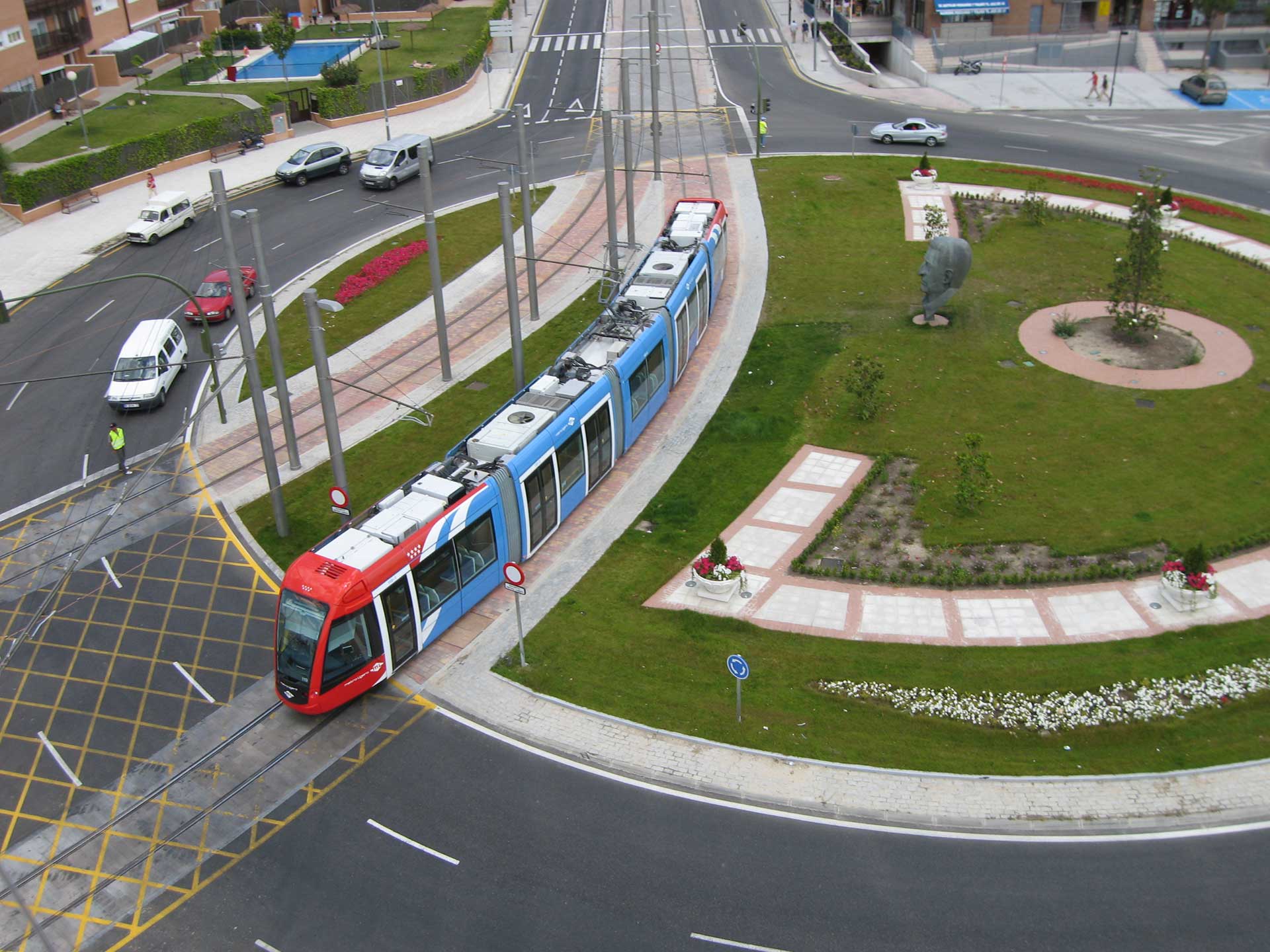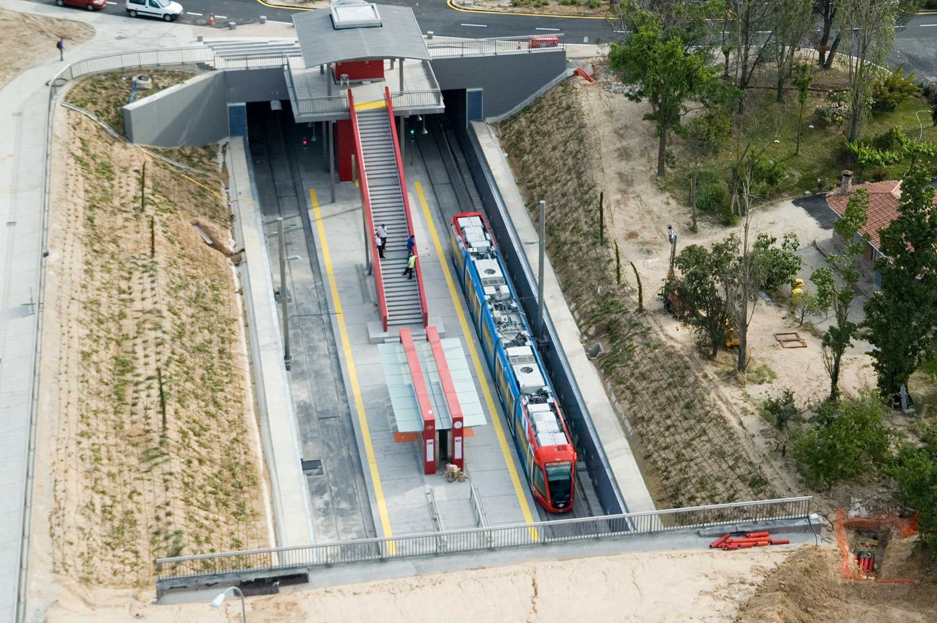 La línea de metro ligero ML3 conecta Colonia Jardín, un barrio en el distrito de La Latina de Madrid, con Puerta de Boadilla, en el municipio de Boadilla del Monte, al oeste de la ciudad. Esta línea forma parte del sistema de transporte público de Madrid y proporciona una conexión rápida y eficiente entre estas dos áreas. Esta obra forma parte de un plan ambicioso para dotar a Madrid de una red de metro ligero que conecte el centro con las principales localidades de la periferia. La línea de tranvía se integra en la estación actual de la Línea 10 del Metro de Madrid. Características principales de la línea: La vía adoptada para esta línea consiste en carriles estriados RI-60N, sobre un sistema de vía en placa según la patente CDM Prefarail. Se utilizó una manta elastomérica en tramos sensibles para reducir las vibraciones. La vía cuenta con diferentes acabados, como hormigón en masa, hormigón estampado, adoquín prefabricado y hormigón aglomerado, según la urbanización de cada zona. Para facilitar la operación de la línea en caso de incidencias o establecer rutas parciales, se han instalado un total de 2 cruces. Las obras también incluyeron la construcción de seis subestaciones de tracción, tres en superficie y tres subterráneas. Metro ligero de Boadilla del Monte